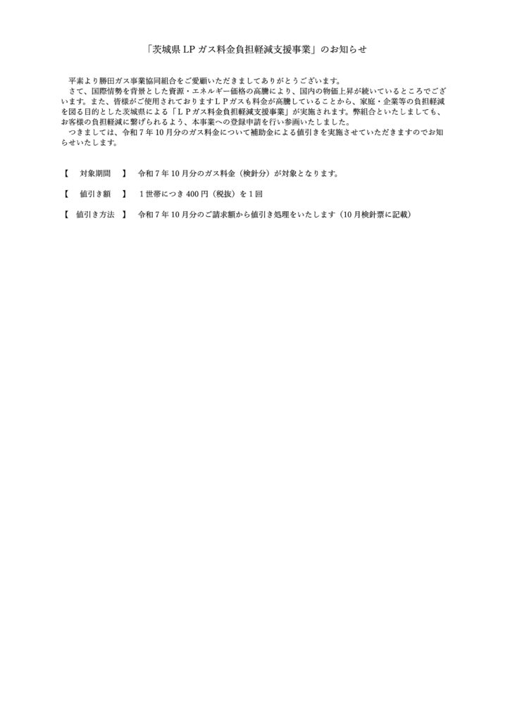 「茨城県LPガス料金負担軽減支援事業」のお知らせ